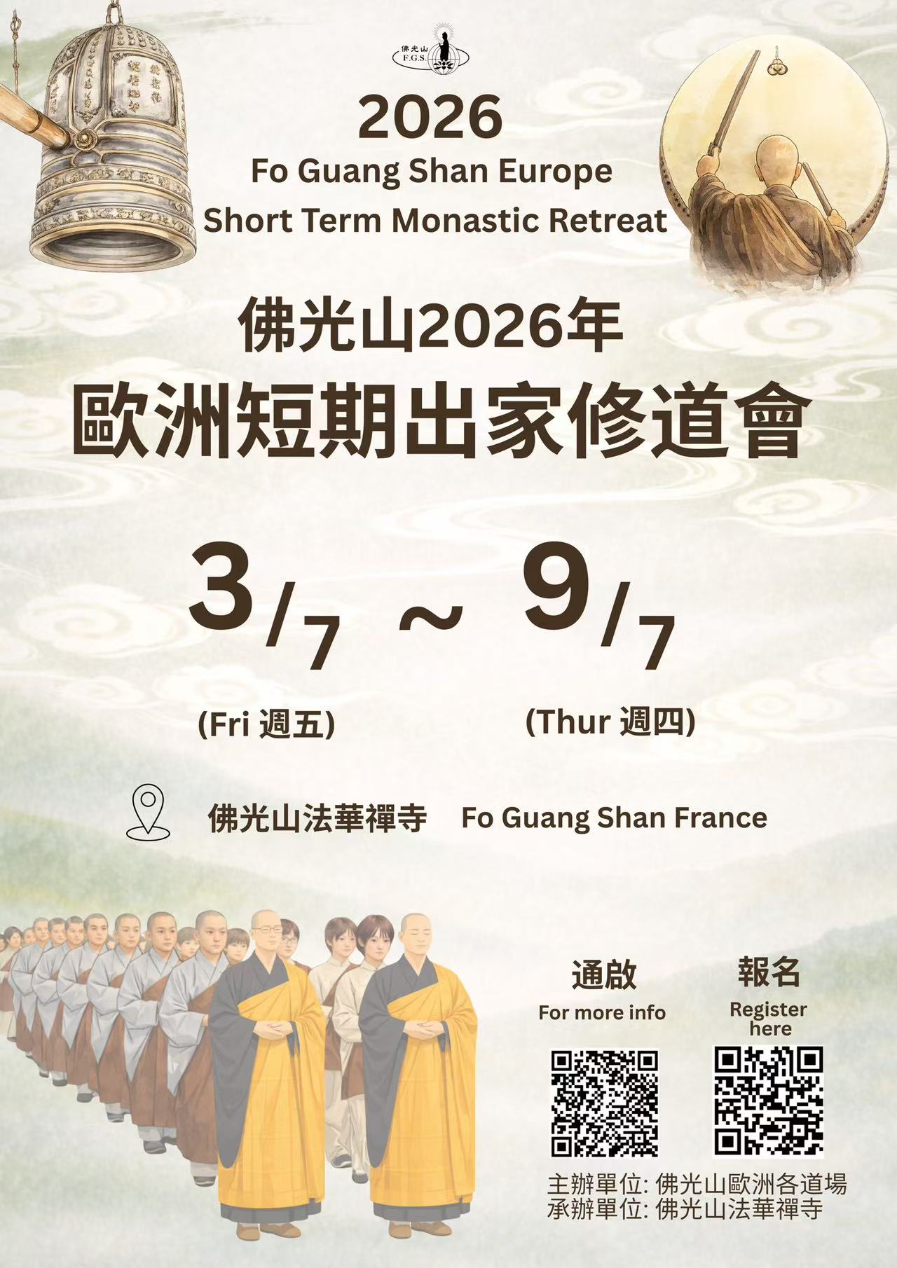 我们提倡的是积极进取的人间佛教,因此我们要将佛法由寺庙带到社会,将佛法由僧众带至信众,让佛法走入家庭,落实人间。